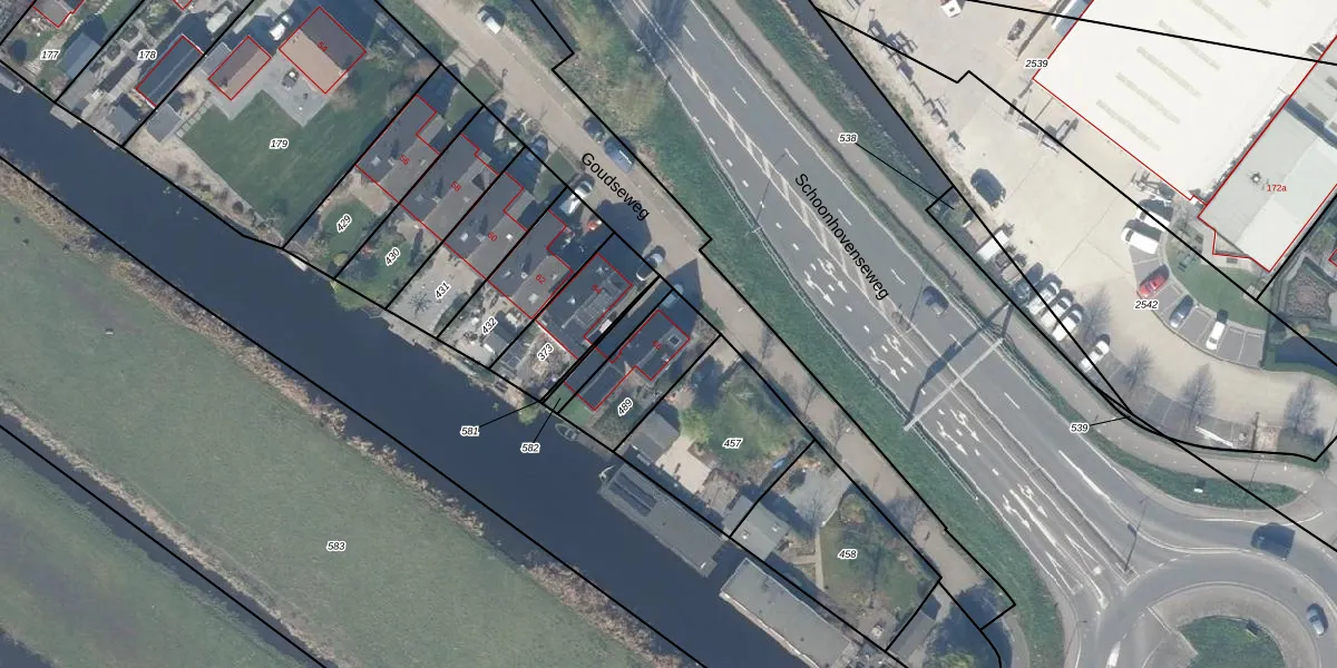 Goudseweg 66 is gelegen op kadastraal perceel GDA01L489. Deze kadastrale aanduiding is uniek en wordt gebruikt door het Kadaster om eigendomsrechten en andere zakelijke rechten vast te leggen. Het perceel maakt onderdeel uit van de kadastrale gemeente Gouda.