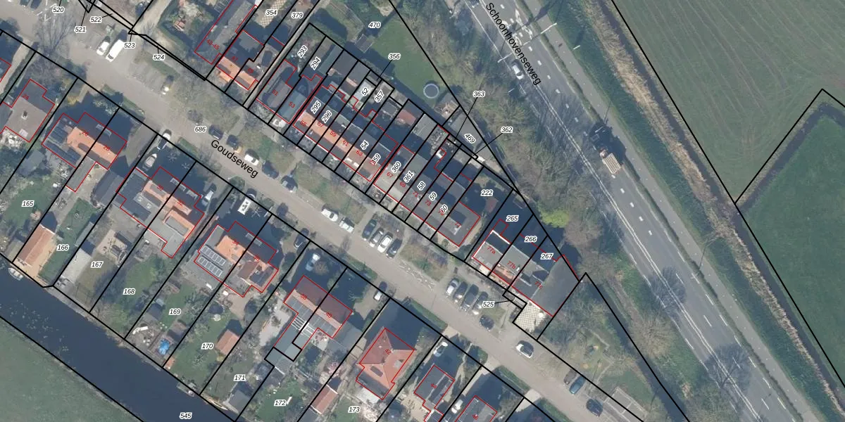 Goudseweg 73 is gelegen op kadastraal perceel GDA01L59. Deze kadastrale aanduiding is uniek en wordt gebruikt door het Kadaster om eigendomsrechten en andere zakelijke rechten vast te leggen. Het perceel maakt onderdeel uit van de kadastrale gemeente Gouda.