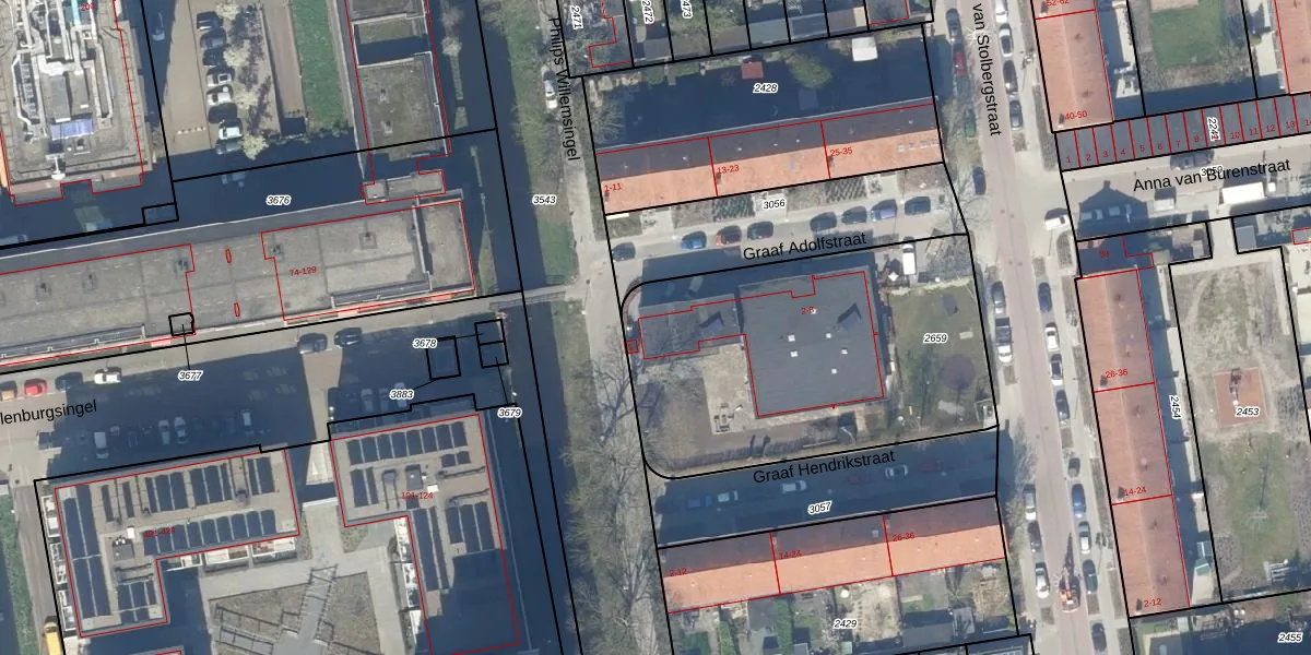 Het perceel waarop Graaf Adolfstraat 10 staat heeft een oppervlakte van 1624 m². Dit is een zeer groot perceel. De perceeloppervlakte wordt geregistreerd door het Kadaster. Gedetailleerde informatie over de maten van dit perceel kunt u vinden in het rapport Kadastrale kaart met maatvoering van Graaf Adolfstraat 10.