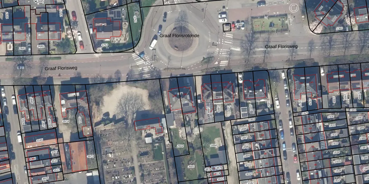 Het perceel waarop Graaf Florisweg 130 staat heeft een oppervlakte van 592 m². Dit is een groot perceel. De perceeloppervlakte wordt geregistreerd door het Kadaster. Gedetailleerde informatie over de maten van dit perceel kunt u vinden in het rapport Kadastrale kaart met maatvoering van Graaf Florisweg 130.
