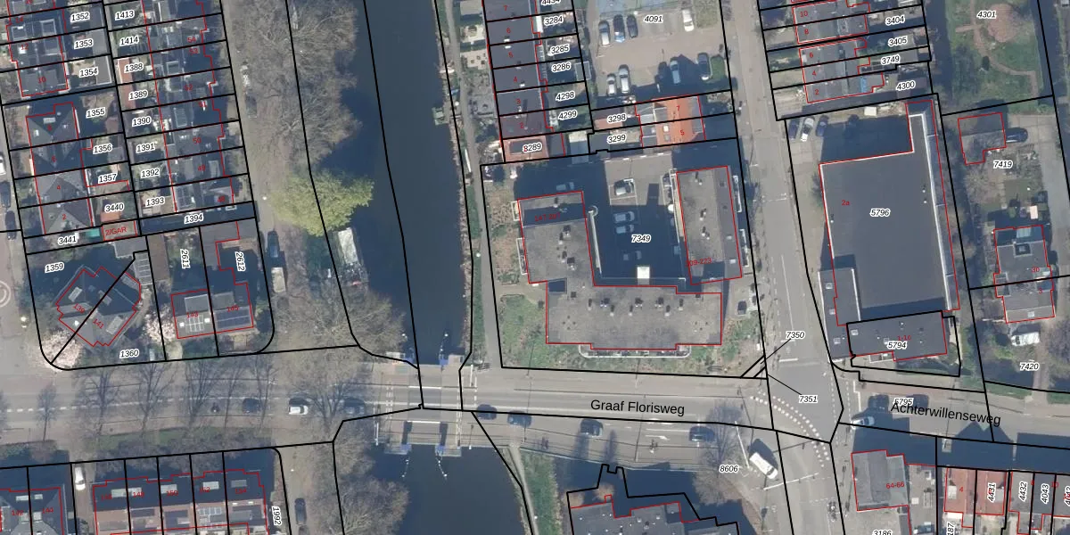 Graaf Florisweg 165 is gelegen op kadastraal perceel GDA01K7349. Deze kadastrale aanduiding is uniek en wordt gebruikt door het Kadaster om eigendomsrechten en andere zakelijke rechten vast te leggen. Het perceel maakt onderdeel uit van de kadastrale gemeente Gouda.