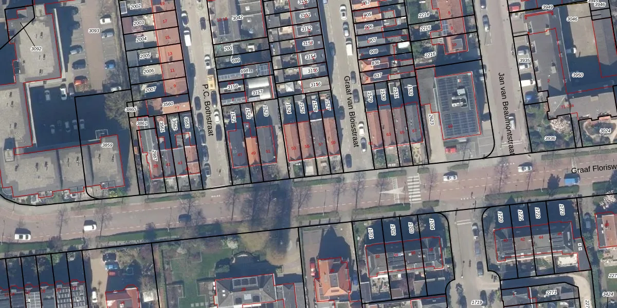 Het perceel waarop Graaf Florisweg 55 staat heeft een oppervlakte van 116 m². Dit is een middelgroot perceel. De perceeloppervlakte wordt geregistreerd door het Kadaster. Gedetailleerde informatie over de maten van dit perceel kunt u vinden in het rapport Kadastrale kaart met maatvoering van Graaf Florisweg 55.