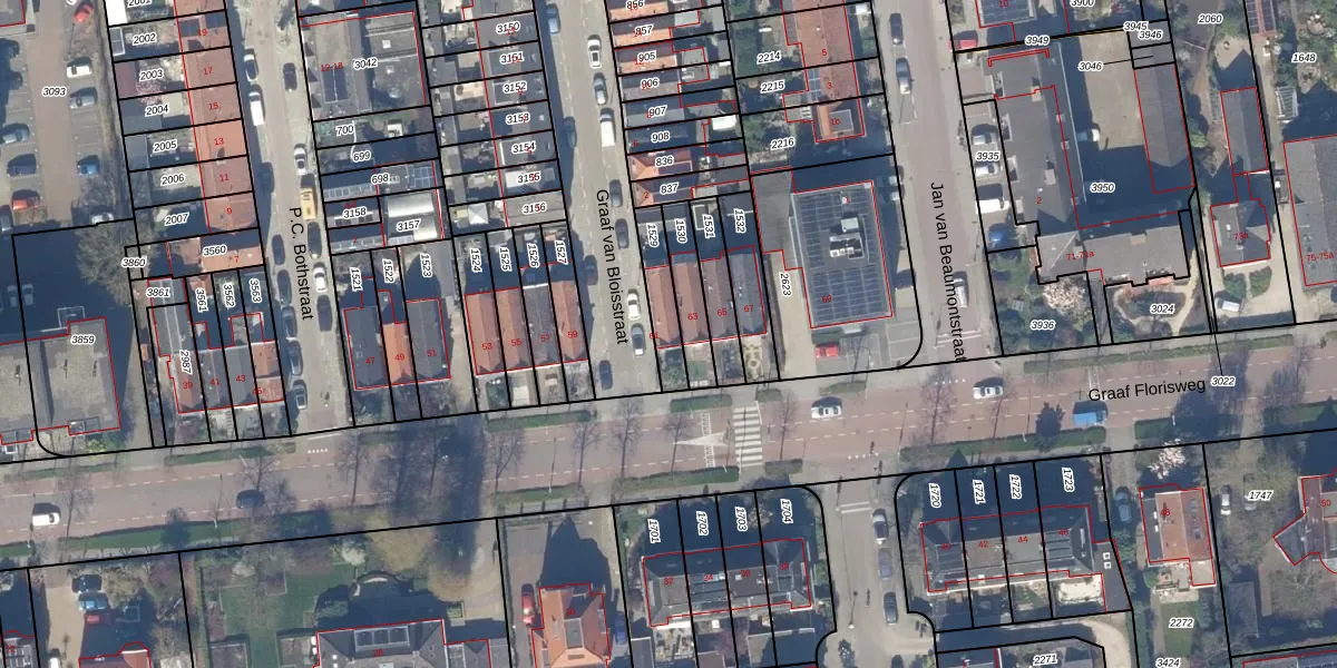 Het perceel waarop Graaf Florisweg 61 staat heeft een oppervlakte van 113 m². Dit is een middelgroot perceel. De perceeloppervlakte wordt geregistreerd door het Kadaster. Gedetailleerde informatie over de maten van dit perceel kunt u vinden in het rapport Kadastrale kaart met maatvoering van Graaf Florisweg 61.