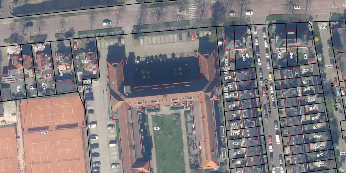 Het perceel waarop Graaf Florisweg 64-12 staat heeft een oppervlakte van 7942 m². Dit is een zeer groot perceel. De perceeloppervlakte wordt geregistreerd door het Kadaster. Gedetailleerde informatie over de maten van dit perceel kunt u vinden in het rapport Kadastrale kaart met maatvoering van Graaf Florisweg 64-12.
