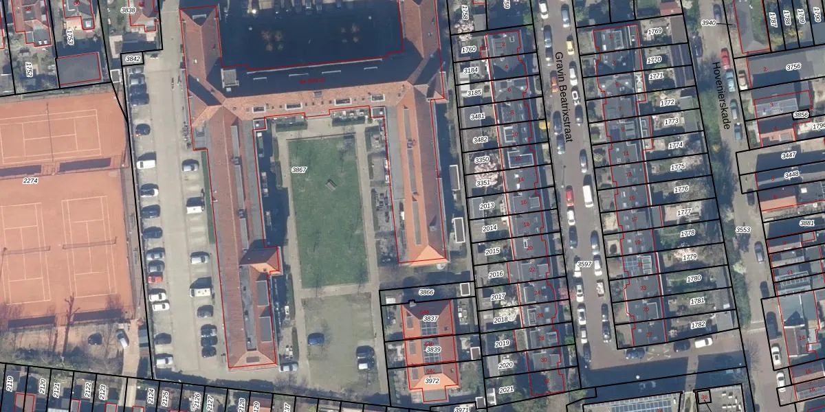 Het perceel waarop Graaf Florisweg 64-120 staat heeft een oppervlakte van 7942 m². Dit is een zeer groot perceel. De perceeloppervlakte wordt geregistreerd door het Kadaster. Gedetailleerde informatie over de maten van dit perceel kunt u vinden in het rapport Kadastrale kaart met maatvoering van Graaf Florisweg 64-120.