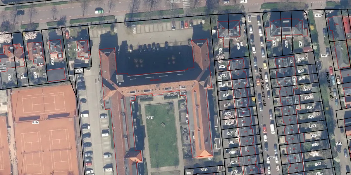 Het perceel waarop Graaf Florisweg 64-216 staat heeft een oppervlakte van 7942 m². Dit is een zeer groot perceel. De perceeloppervlakte wordt geregistreerd door het Kadaster. Gedetailleerde informatie over de maten van dit perceel kunt u vinden in het rapport Kadastrale kaart met maatvoering van Graaf Florisweg 64-216.