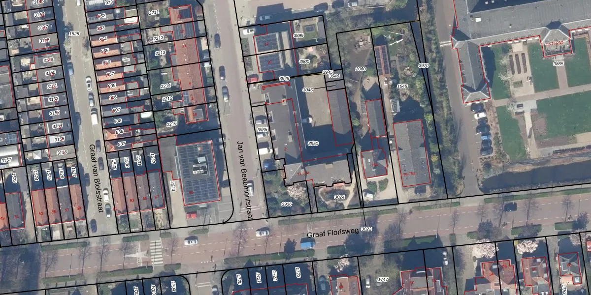 Het perceel waarop Graaf Florisweg 71-7 staat heeft een oppervlakte van 985 m². Dit is een groot perceel. De perceeloppervlakte wordt geregistreerd door het Kadaster. Gedetailleerde informatie over de maten van dit perceel kunt u vinden in het rapport Kadastrale kaart met maatvoering van Graaf Florisweg 71-7.