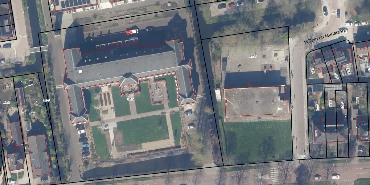 Het perceel waarop Graaf Florisweg 77-121 staat heeft een oppervlakte van 7424 m². Dit is een zeer groot perceel. De perceeloppervlakte wordt geregistreerd door het Kadaster. Gedetailleerde informatie over de maten van dit perceel kunt u vinden in het rapport Kadastrale kaart met maatvoering van Graaf Florisweg 77-121.