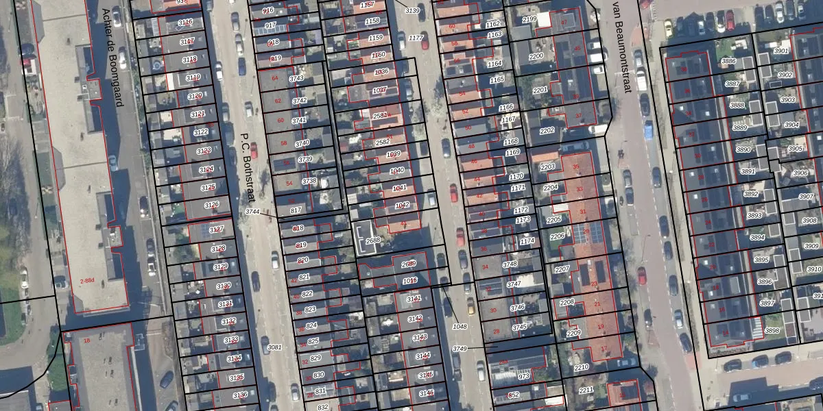 Gebruik de zoekbalk of klik op een perceel voor informatie over de adressen binnen dit perceel.