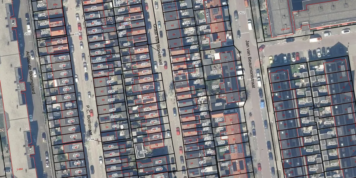 Gebruik de zoekbalk of klik op een perceel voor informatie over de adressen binnen dit perceel.