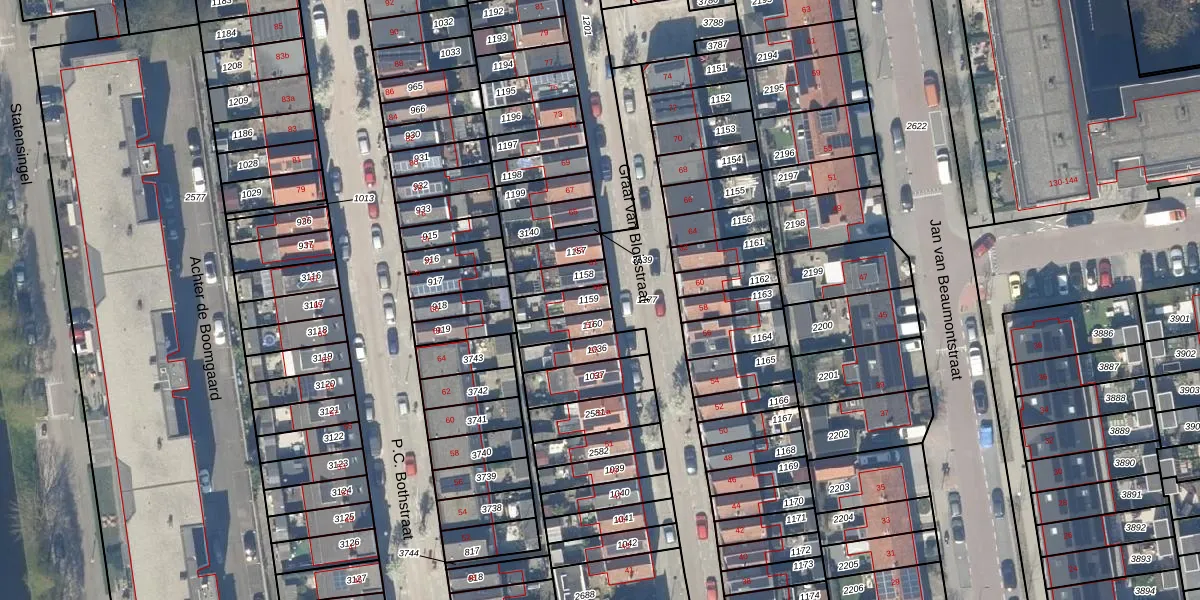 Gebruik de zoekbalk of klik op een perceel voor informatie over de adressen binnen dit perceel.