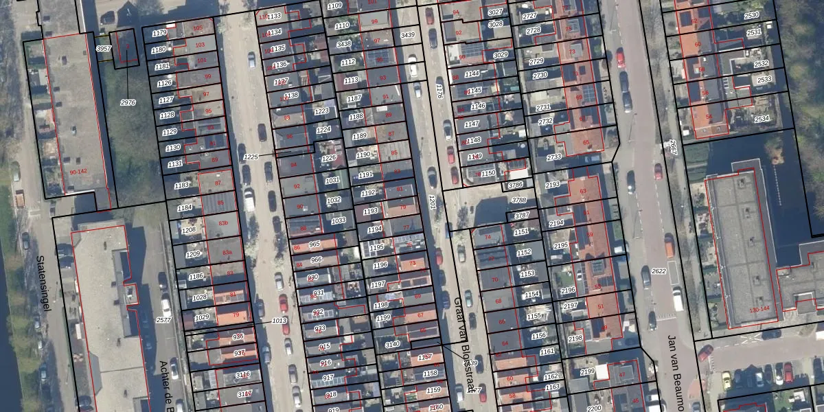 Gebruik de zoekbalk of klik op een perceel voor informatie over de adressen binnen dit perceel.