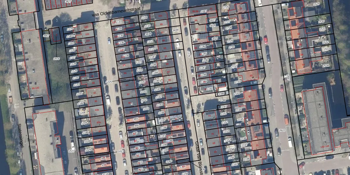 Het perceel waarop Graaf van Bloisstraat 83 staat heeft een oppervlakte van 78 m². Dit is een klein perceel. De perceeloppervlakte wordt geregistreerd door het Kadaster. Gedetailleerde informatie over de maten van dit perceel kunt u vinden in het rapport Kadastrale kaart met maatvoering van Graaf van Bloisstraat 83.