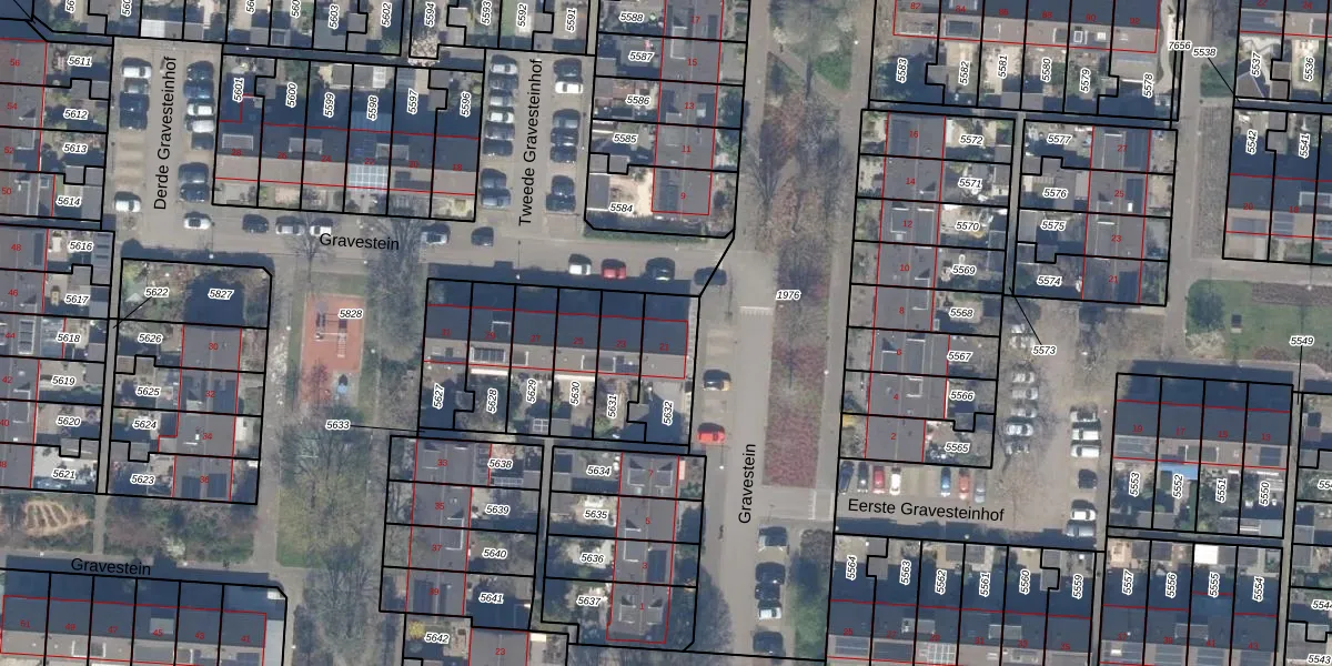 Het perceel waarop Gravestein 21 staat heeft een oppervlakte van 183 m². Dit is een middelgroot perceel. De perceeloppervlakte wordt geregistreerd door het Kadaster. Gedetailleerde informatie over de maten van dit perceel kunt u vinden in het rapport Kadastrale kaart met maatvoering van Gravestein 21.