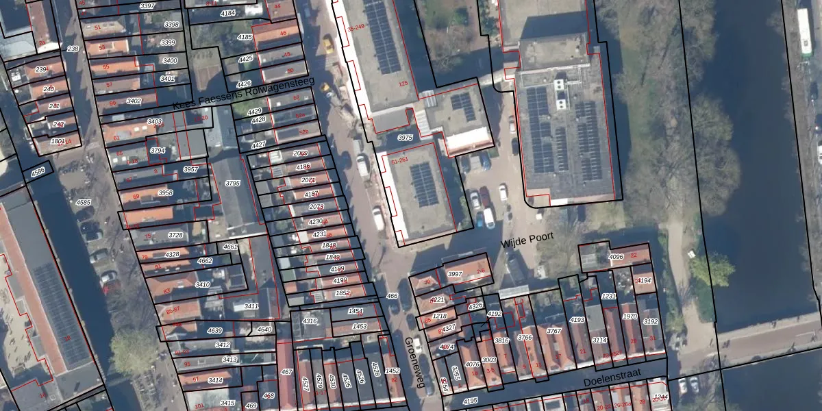 Groeneweg 155 is gelegen op kadastraal perceel GDA01C3975. Deze kadastrale aanduiding is uniek en wordt gebruikt door het Kadaster om eigendomsrechten en andere zakelijke rechten vast te leggen. Het perceel maakt onderdeel uit van de kadastrale gemeente Gouda.
