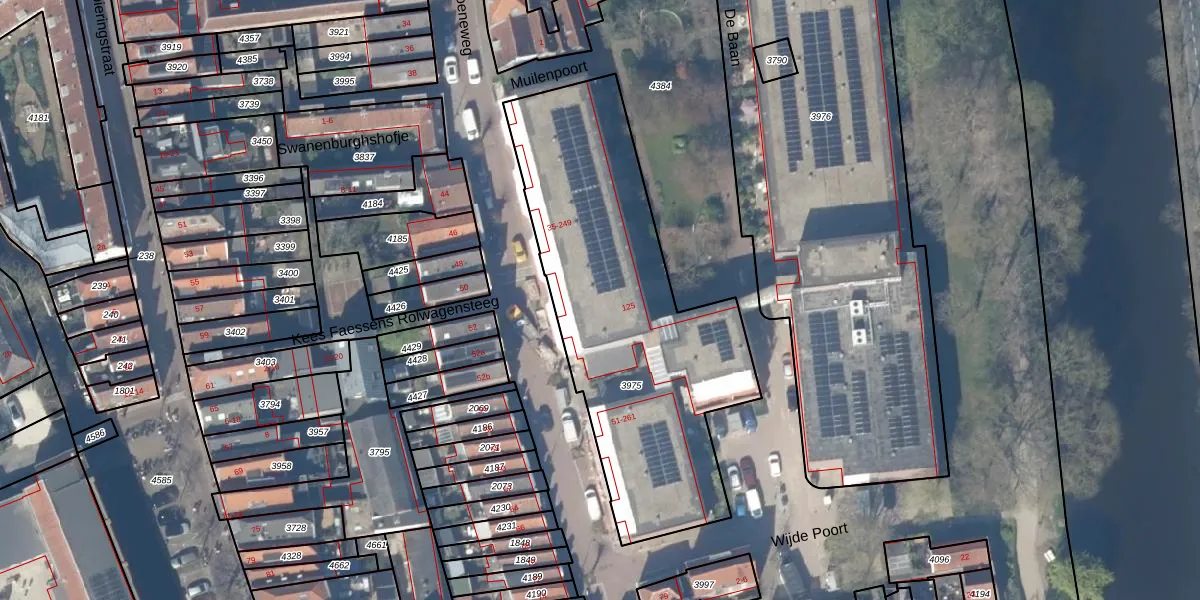 Groeneweg 247 is gelegen op kadastraal perceel GDA01C3975. Deze kadastrale aanduiding is uniek en wordt gebruikt door het Kadaster om eigendomsrechten en andere zakelijke rechten vast te leggen. Het perceel maakt onderdeel uit van de kadastrale gemeente Gouda.