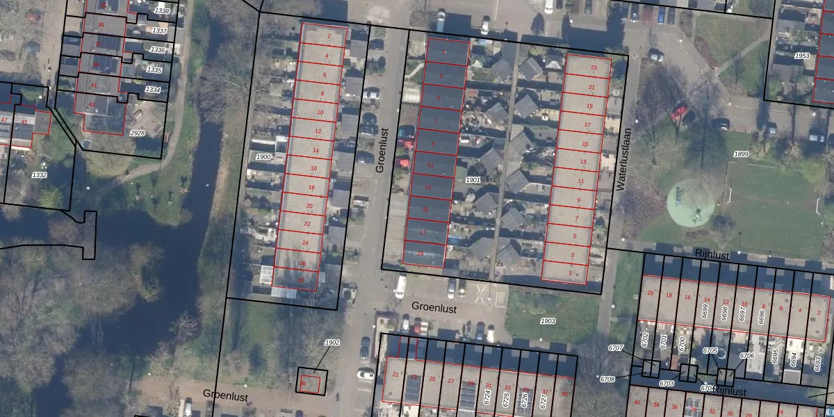 Het perceel waarop Groenlust 15 staat heeft een oppervlakte van 3060 m². Dit is een zeer groot perceel. De perceeloppervlakte wordt geregistreerd door het Kadaster. Gedetailleerde informatie over de maten van dit perceel kunt u vinden in het rapport Kadastrale kaart met maatvoering van Groenlust 15.