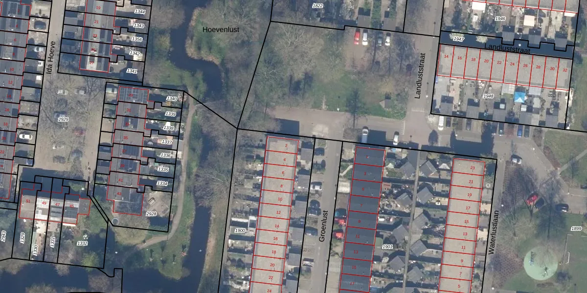 Het perceel waarop Groenlust 2 staat heeft een oppervlakte van 1841 m². Dit is een zeer groot perceel. De perceeloppervlakte wordt geregistreerd door het Kadaster. Gedetailleerde informatie over de maten van dit perceel kunt u vinden in het rapport Kadastrale kaart met maatvoering van Groenlust 2.