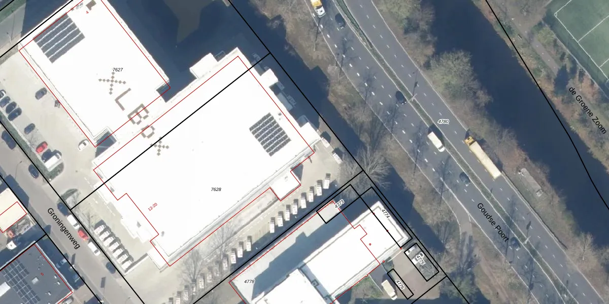 Groningenweg 14 is gelegen op kadastraal perceel GDA01M7628. Deze kadastrale aanduiding is uniek en wordt gebruikt door het Kadaster om eigendomsrechten en andere zakelijke rechten vast te leggen. Het perceel maakt onderdeel uit van de kadastrale gemeente Gouda.