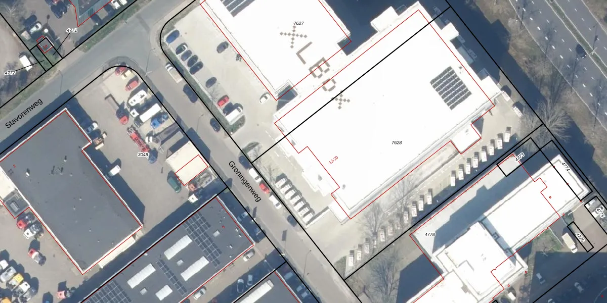 Groningenweg 14-15 is gelegen op kadastraal perceel GDA01M7628. Deze kadastrale aanduiding is uniek en wordt gebruikt door het Kadaster om eigendomsrechten en andere zakelijke rechten vast te leggen. Het perceel maakt onderdeel uit van de kadastrale gemeente Gouda.