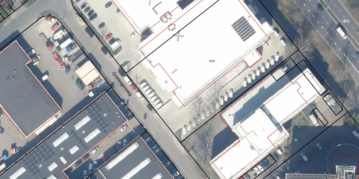 Het perceel waarop Groningenweg 14-26 staat heeft een oppervlakte van 4125 m². Dit is een zeer groot perceel. De perceeloppervlakte wordt geregistreerd door het Kadaster. Gedetailleerde informatie over de maten van dit perceel kunt u vinden in het rapport Kadastrale kaart met maatvoering van Groningenweg 14-26.
