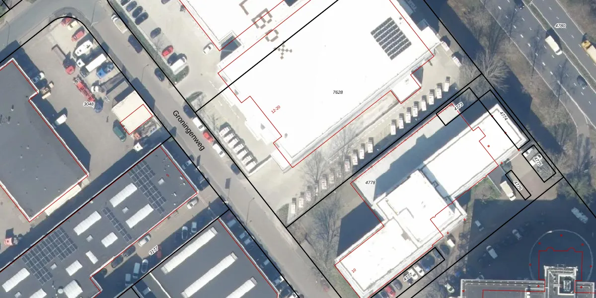 Het perceel waarop Groningenweg 14-44 staat heeft een oppervlakte van 4125 m². Dit is een zeer groot perceel. De perceeloppervlakte wordt geregistreerd door het Kadaster. Gedetailleerde informatie over de maten van dit perceel kunt u vinden in het rapport Kadastrale kaart met maatvoering van Groningenweg 14-44.