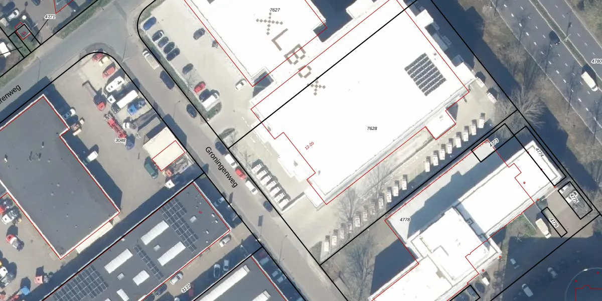 Groningenweg 14-53 is gelegen op kadastraal perceel GDA01M7628. Deze kadastrale aanduiding is uniek en wordt gebruikt door het Kadaster om eigendomsrechten en andere zakelijke rechten vast te leggen. Het perceel maakt onderdeel uit van de kadastrale gemeente Gouda.