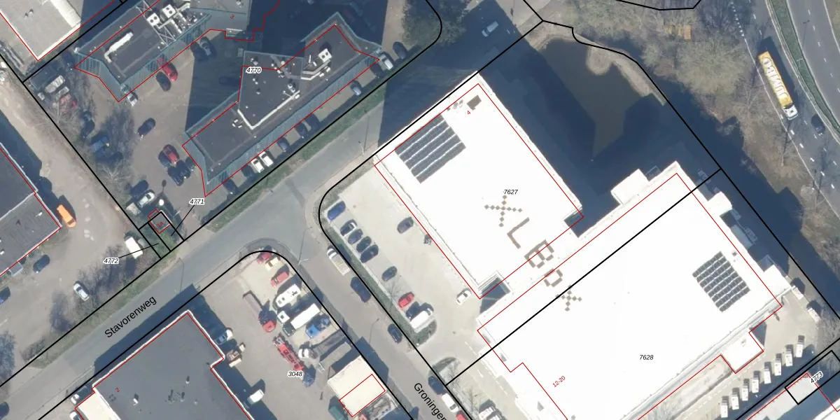 Groningenweg 14-65 is gelegen op kadastraal perceel GDA01M7627. Deze kadastrale aanduiding is uniek en wordt gebruikt door het Kadaster om eigendomsrechten en andere zakelijke rechten vast te leggen. Het perceel maakt onderdeel uit van de kadastrale gemeente Gouda.