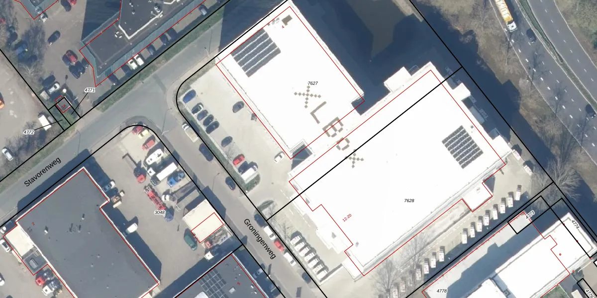 Groningenweg 14-72 is gelegen op kadastraal perceel GDA01M7627. Deze kadastrale aanduiding is uniek en wordt gebruikt door het Kadaster om eigendomsrechten en andere zakelijke rechten vast te leggen. Het perceel maakt onderdeel uit van de kadastrale gemeente Gouda.