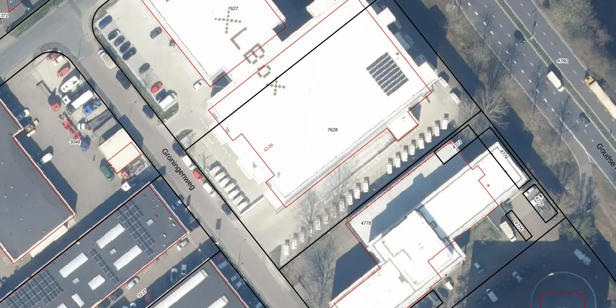 Groningenweg 14-141 is gelegen op kadastraal perceel GDA01M7628. Deze kadastrale aanduiding is uniek en wordt gebruikt door het Kadaster om eigendomsrechten en andere zakelijke rechten vast te leggen. Het perceel maakt onderdeel uit van de kadastrale gemeente Gouda.