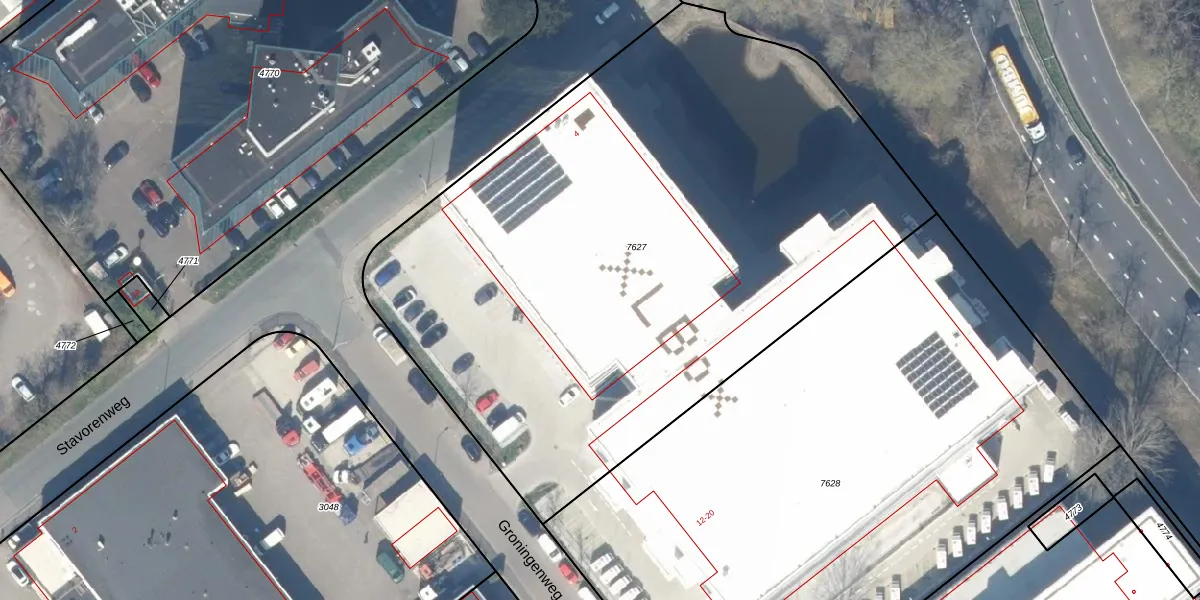 Groningenweg 14-168 is gelegen op kadastraal perceel GDA01M7627. Deze kadastrale aanduiding is uniek en wordt gebruikt door het Kadaster om eigendomsrechten en andere zakelijke rechten vast te leggen. Het perceel maakt onderdeel uit van de kadastrale gemeente Gouda.