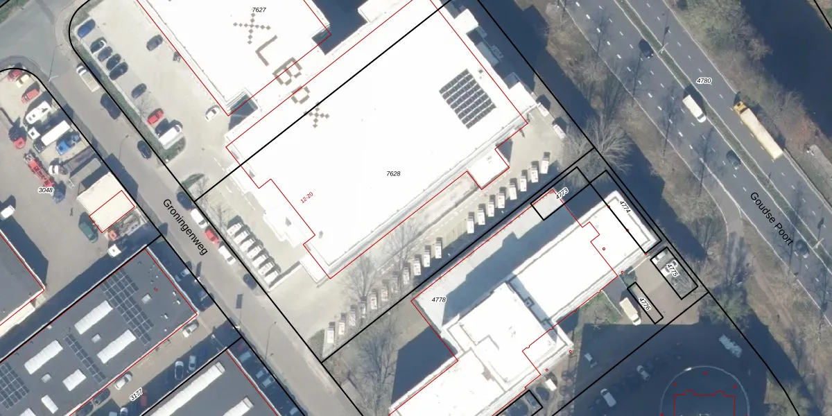 Groningenweg 14-225 is gelegen op kadastraal perceel GDA01M7628. Deze kadastrale aanduiding is uniek en wordt gebruikt door het Kadaster om eigendomsrechten en andere zakelijke rechten vast te leggen. Het perceel maakt onderdeel uit van de kadastrale gemeente Gouda.