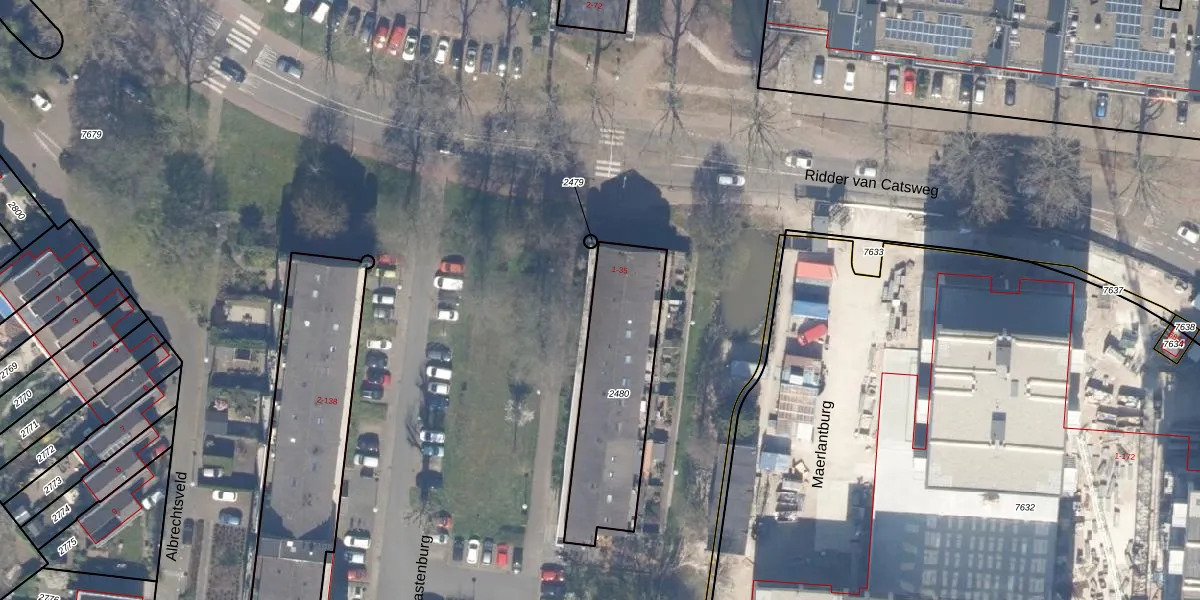Het perceel waarop het adres ligt is GDA01-M-2480. De afkorting 'GDA01' staat voor kadastrale gemeente Gouda. Het perceel is kleiner dan gemiddeld in Gouda. Het perceel is 557 m² groot, terwijl het gemiddelde ligt op 678,99 m². Het grootste perceel in de kadastrale gemeente is 24,2 ha. Het kleinste perceel heeft een oppervlakte van 0 m². Op het perceel zijn 18 adressen aanwezig. De laatste wijziging in het de Basisregistratie Kadaster (BRK) was op 20-12-2006.