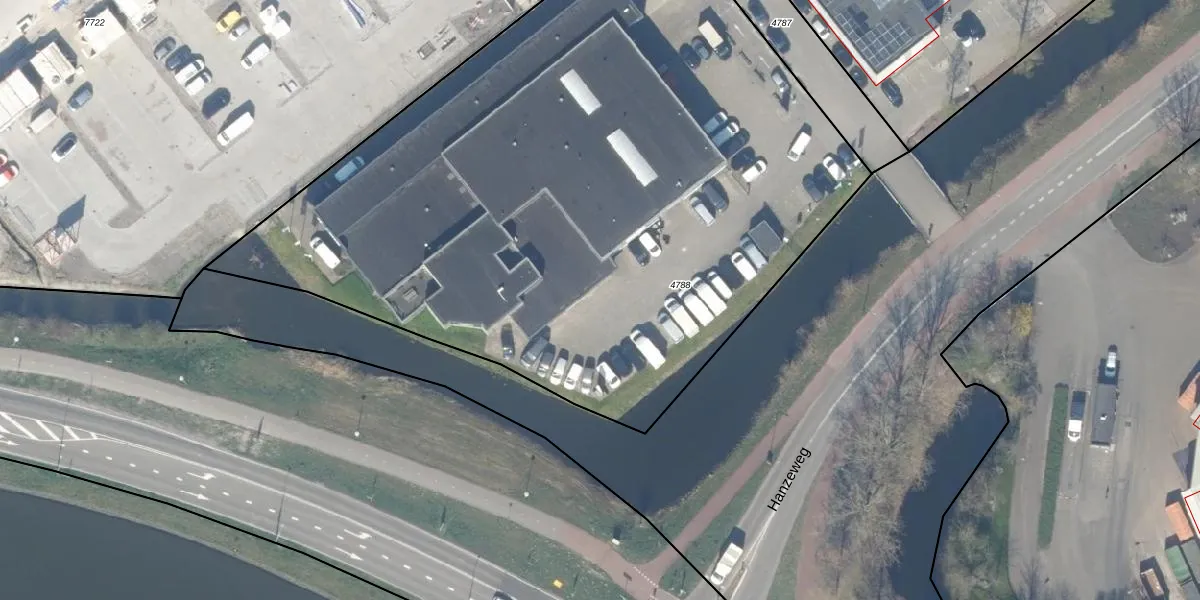 Het perceel waarop Hanzeweg 1-a staat heeft een oppervlakte van 4830 m². Dit is een zeer groot perceel. De perceeloppervlakte wordt geregistreerd door het Kadaster. Gedetailleerde informatie over de maten van dit perceel kunt u vinden in het rapport Kadastrale kaart met maatvoering van Hanzeweg 1-a.