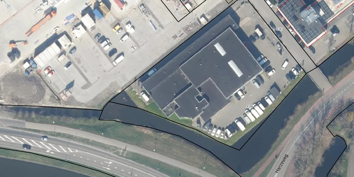 Het perceel waarop Hanzeweg 1-g staat heeft een oppervlakte van 4830 m². Dit is een zeer groot perceel. De perceeloppervlakte wordt geregistreerd door het Kadaster. Gedetailleerde informatie over de maten van dit perceel kunt u vinden in het rapport Kadastrale kaart met maatvoering van Hanzeweg 1-g.
