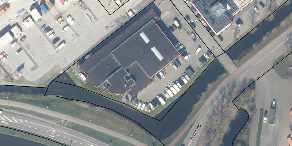 Het perceel waarop Hanzeweg 1-r staat heeft een oppervlakte van 4830 m². Dit is een zeer groot perceel. De perceeloppervlakte wordt geregistreerd door het Kadaster. Gedetailleerde informatie over de maten van dit perceel kunt u vinden in het rapport Kadastrale kaart met maatvoering van Hanzeweg 1-r.