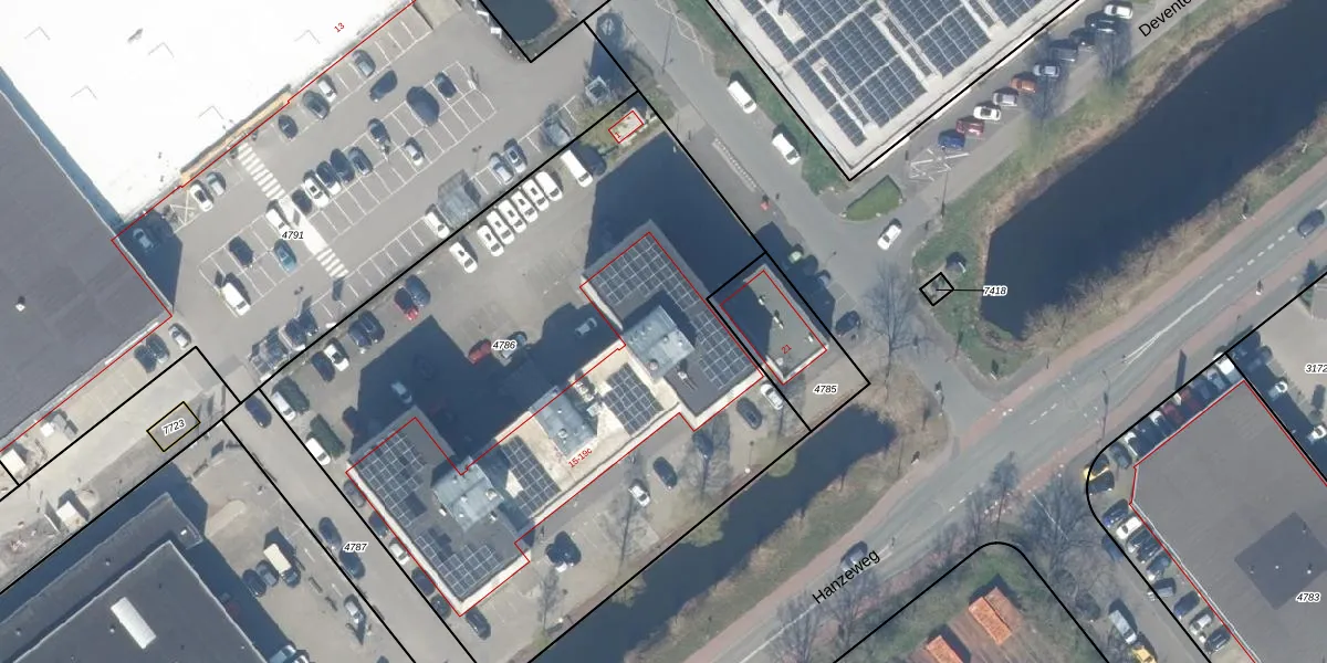 Het perceel waarop Hanzeweg 19-b staat heeft een oppervlakte van 3870 m². Dit is een zeer groot perceel. De perceeloppervlakte wordt geregistreerd door het Kadaster. Gedetailleerde informatie over de maten van dit perceel kunt u vinden in het rapport Kadastrale kaart met maatvoering van Hanzeweg 19-b.