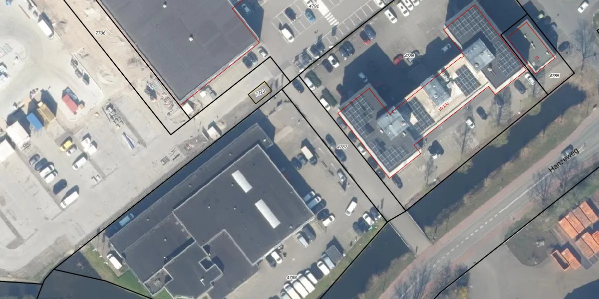 Het perceel waarop Hanzeweg 3-m staat heeft een oppervlakte van 4830 m². Dit is een zeer groot perceel. De perceeloppervlakte wordt geregistreerd door het Kadaster. Gedetailleerde informatie over de maten van dit perceel kunt u vinden in het rapport Kadastrale kaart met maatvoering van Hanzeweg 3-m.