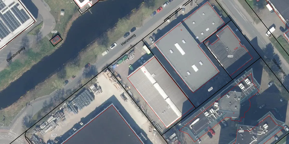 Het perceel waarop Hanzeweg 6 staat heeft een oppervlakte van 1849 m². Dit is een zeer groot perceel. De perceeloppervlakte wordt geregistreerd door het Kadaster. Gedetailleerde informatie over de maten van dit perceel kunt u vinden in het rapport Kadastrale kaart met maatvoering van Hanzeweg 6.
