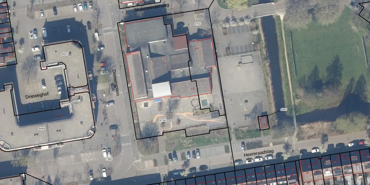 Het perceel waarop Heemraadslag 1 staat heeft een oppervlakte van 2335 m². Dit is een zeer groot perceel. De perceeloppervlakte wordt geregistreerd door het Kadaster. Gedetailleerde informatie over de maten van dit perceel kunt u vinden in het rapport Kadastrale kaart met maatvoering van Heemraadslag 1.