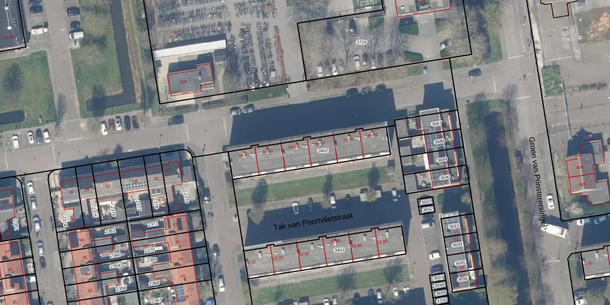 Het perceel waarop het adres ligt is GDA01-I-3402. De afkorting 'GDA01' staat voor kadastrale gemeente Gouda. Het perceel is kleiner dan gemiddeld in Gouda. Het perceel is 487 m² groot, terwijl het gemiddelde ligt op 678,78 m². De grootste perceeloppervlakte in de kadastrale gemeente is 24,2 ha. De kleinste oppervlakte bedraagt 0 m². Op het perceel zijn 30 adressen aanwezig. In de Basisregistratie Kadaster (BRK) werden de grenzen van het perceel geregistreerd op 22-11-2007.