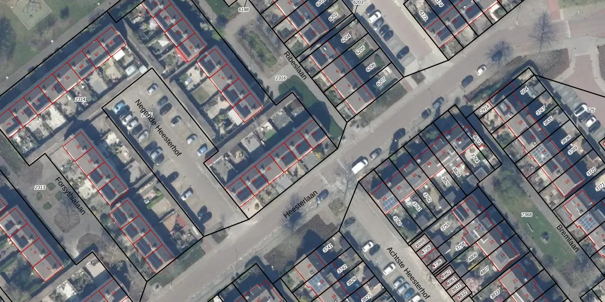 Het perceel waarop Heesterlaan 44 staat heeft een oppervlakte van 4772 m². Dit is een zeer groot perceel. De perceeloppervlakte wordt geregistreerd door het Kadaster. Gedetailleerde informatie over de maten van dit perceel kunt u vinden in het rapport Kadastrale kaart met maatvoering van Heesterlaan 44.