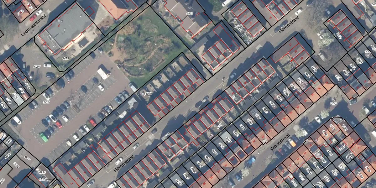 Het perceel waarop Herenstraat 30 staat heeft een oppervlakte van 1837 m². Dit is een zeer groot perceel. De perceeloppervlakte wordt geregistreerd door het Kadaster. Gedetailleerde informatie over de maten van dit perceel kunt u vinden in het rapport Kadastrale kaart met maatvoering van Herenstraat 30.