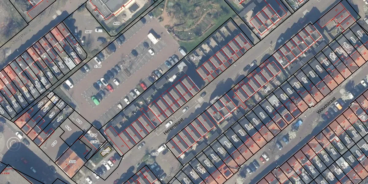 Het perceel waarop Herenstraat 44 staat heeft een oppervlakte van 1837 m². Dit is een zeer groot perceel. De perceeloppervlakte wordt geregistreerd door het Kadaster. Gedetailleerde informatie over de maten van dit perceel kunt u vinden in het rapport Kadastrale kaart met maatvoering van Herenstraat 44.