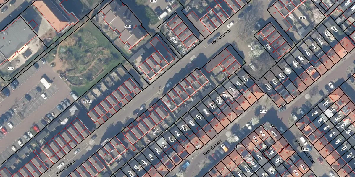 Het perceel waarop Herenstraat 45 staat heeft een oppervlakte van 1920 m². Dit is een zeer groot perceel. De perceeloppervlakte wordt geregistreerd door het Kadaster. Gedetailleerde informatie over de maten van dit perceel kunt u vinden in het rapport Kadastrale kaart met maatvoering van Herenstraat 45.