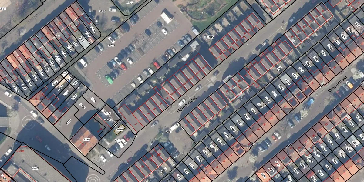 Het perceel waarop Herenstraat 56 staat heeft een oppervlakte van 1837 m². Dit is een zeer groot perceel. De perceeloppervlakte wordt geregistreerd door het Kadaster. Gedetailleerde informatie over de maten van dit perceel kunt u vinden in het rapport Kadastrale kaart met maatvoering van Herenstraat 56.