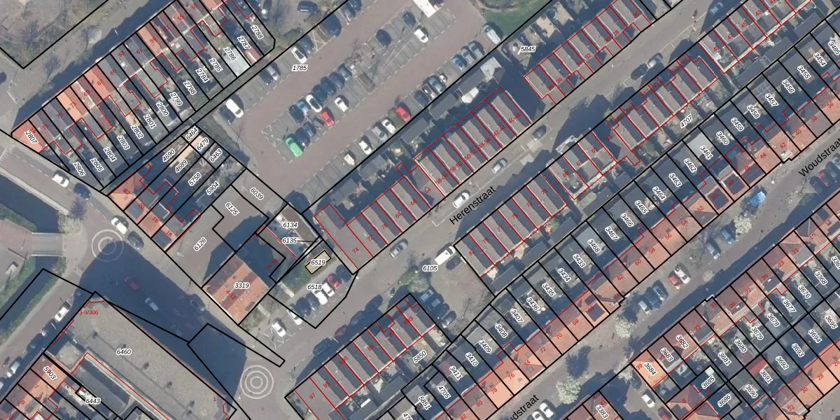 Het perceel waarop Herenstraat 66 staat heeft een oppervlakte van 1837 m². Dit is een zeer groot perceel. De perceeloppervlakte wordt geregistreerd door het Kadaster. Gedetailleerde informatie over de maten van dit perceel kunt u vinden in het rapport Kadastrale kaart met maatvoering van Herenstraat 66.