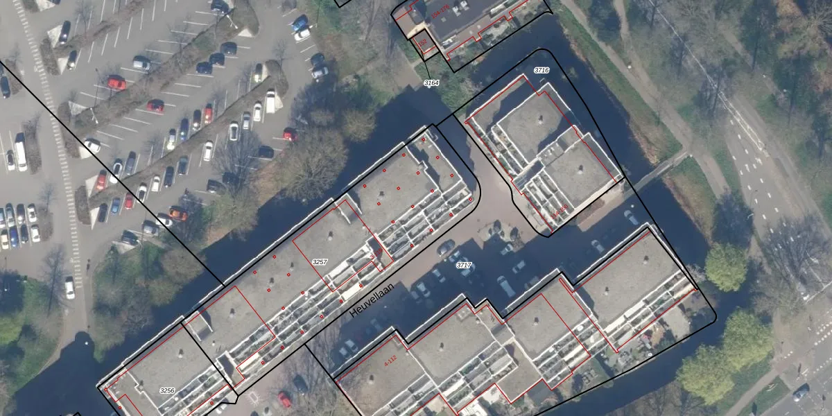 Het perceel waarop Heuvellaan 101 staat heeft een oppervlakte van 1735 m². Dit is een zeer groot perceel. De perceeloppervlakte wordt geregistreerd door het Kadaster. Gedetailleerde informatie over de maten van dit perceel kunt u vinden in het rapport Kadastrale kaart met maatvoering van Heuvellaan 101.