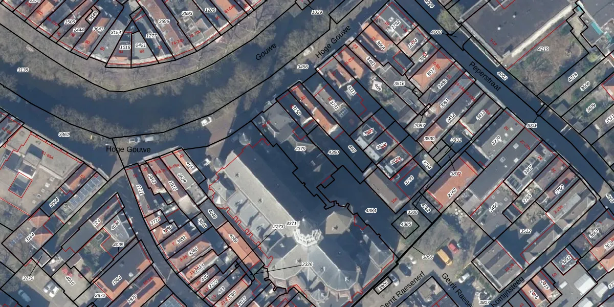 Hoge Gouwe 39-f is gelegen op kadastraal perceel GDA01D4379. Deze kadastrale aanduiding is uniek en wordt gebruikt door het Kadaster om eigendomsrechten en andere zakelijke rechten vast te leggen. Het perceel maakt onderdeel uit van de kadastrale gemeente Gouda.