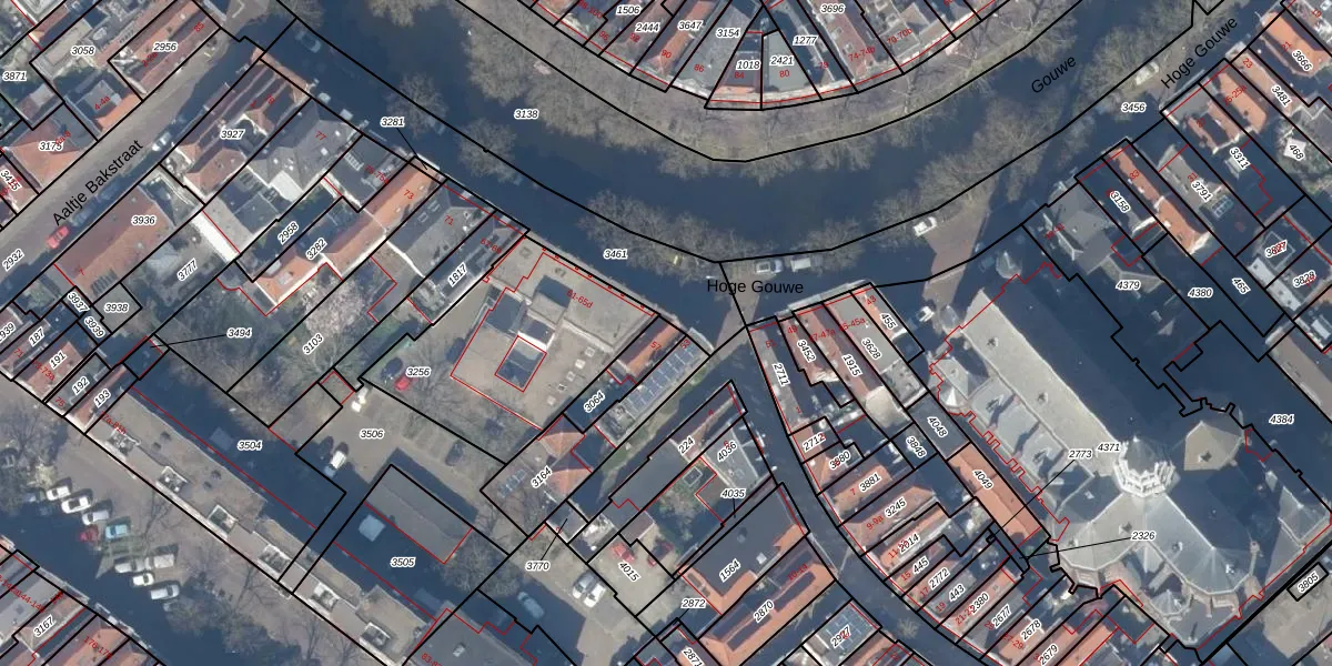 Hoge Gouwe 57 is gelegen op kadastraal perceel GDA01D3064. Deze kadastrale aanduiding is uniek en wordt gebruikt door het Kadaster om eigendomsrechten en andere zakelijke rechten vast te leggen. Het perceel maakt onderdeel uit van de kadastrale gemeente Gouda.